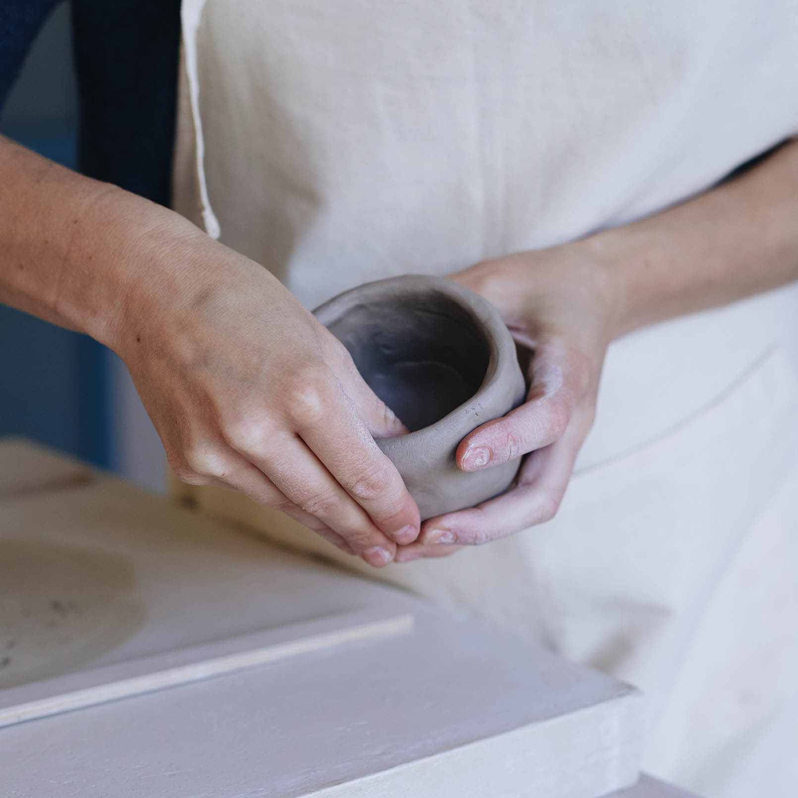 Pierwsze zajęcia to Twoje spotkanie z gliną. To tutaj zaczyna się cała magia! Poznasz podstawowe, ale niezwykle wszechstronne techniki ręcznego formowania, takie jak metoda pinch pot, wałeczków, drążenia czy lepienia z płata. Do dyspozycji będziesz mieć dwie kostki gliny, z których będziesz w stanie stworzyć kilka wyrobów – na przykład kubek i talerzyk. Możesz również skupić się na jednym większym projekcie, takim jak wazon, misa czy doniczka. To fantastyczna baza, która da Ci solidne podstawy i pewność siebie na start Twojej ceramicznej przygody. Jeśli wybierasz się na warsztaty ceramiczne pierwszy raz, to polecamy Ci zrobić kilka mniejszych prac. Dzięki temu poznasz różne techniki lepienia, a jednocześnie na etapie szkliwienia będziesz w stanie bardziej poeksperymentować.