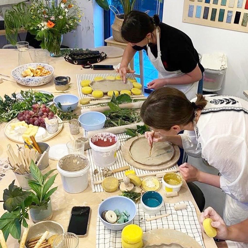 Four ceramic sessions where you’ll learn the steps of building forms on the pottery wheel and working with your pieces. You’ll create a bowl, a plate, and a small bowl. In the final session, you’ll glaze your pieces. Final pieces will be ready for pickup in approximately 2 weeks.