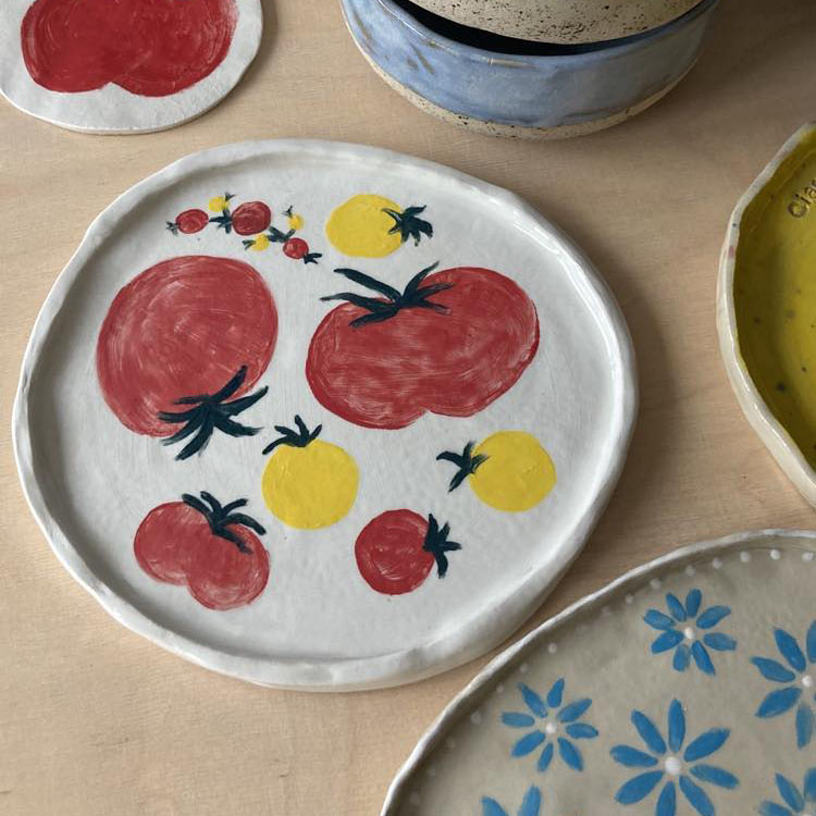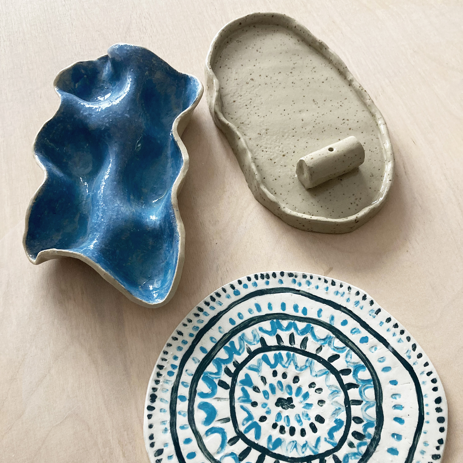 You’ll be able to decorate your finished pieces with stamps and engobes, adding color to your creations.