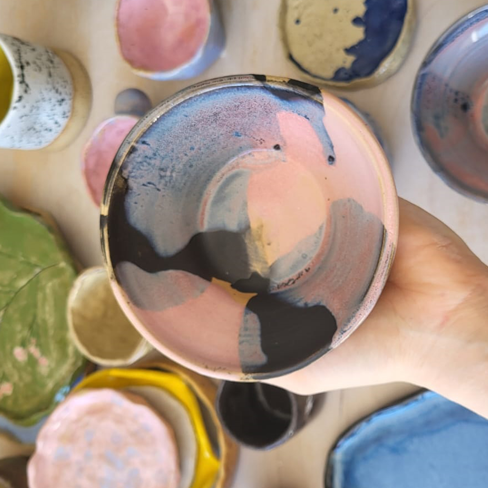 Na czas trwania warsztatów każdy z Was dostanie ochronny fartuszek, ale nie zaszkodzi jeśli ubierzesz wygodny strój, którego nie będzie Ci żal pobrudzić. Pracownia jest ogrzewana, ale przygotuj się, że zimą jest nieco chłodniej. Jeśli tylko możesz to przyjdź w krótkich paznokciach. Jest znacznie wygodniej 🙂